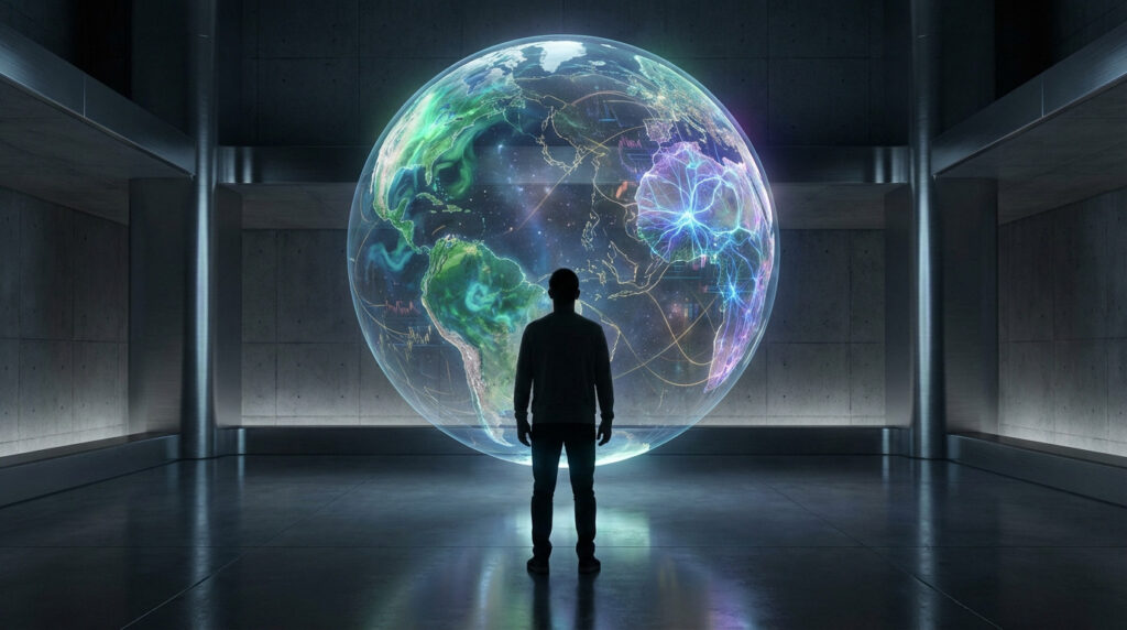 Illustration symbolique des bouleversements mondiaux et prédictions pour 2026
